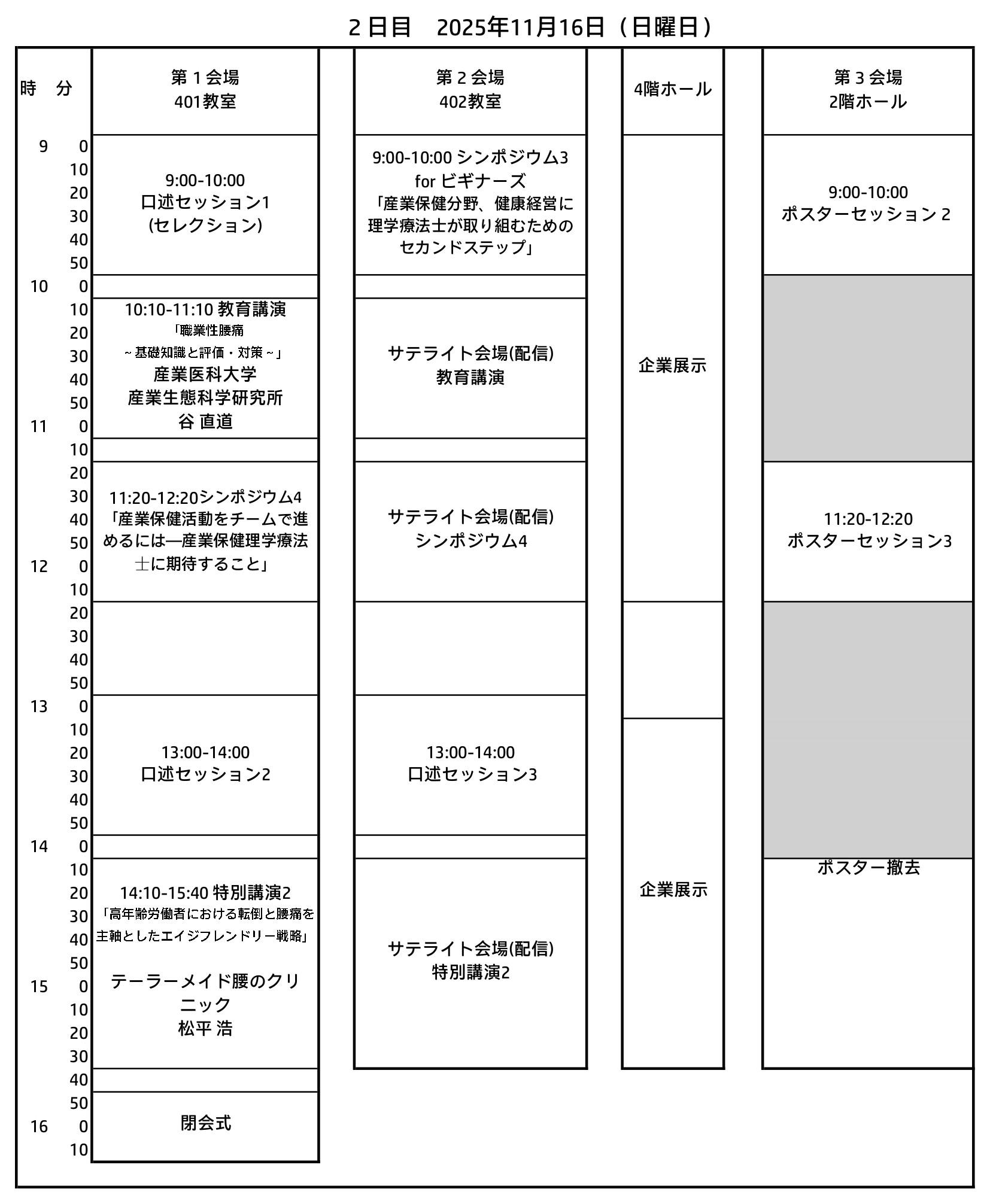 この大会で共有した学びと熱量が、皆さまの現場での実践をさらに前へと推し進め、産業保健理学療法の未来を力強く切り拓く原動力となることを願っております。
